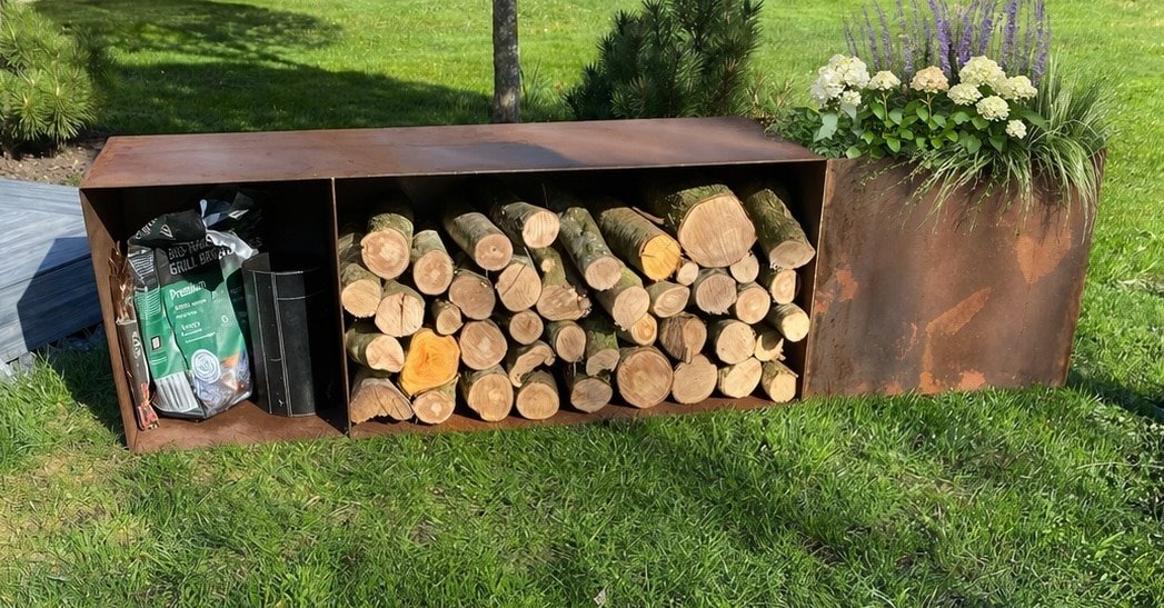 Brændeskjul i stål og corten stål – moderne opbevaring til brænde