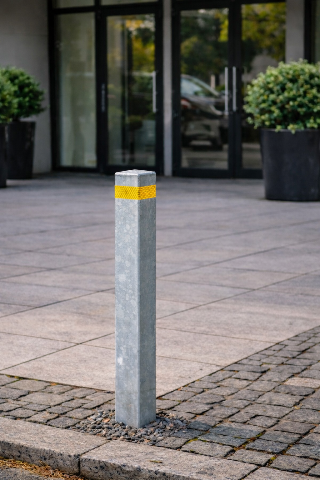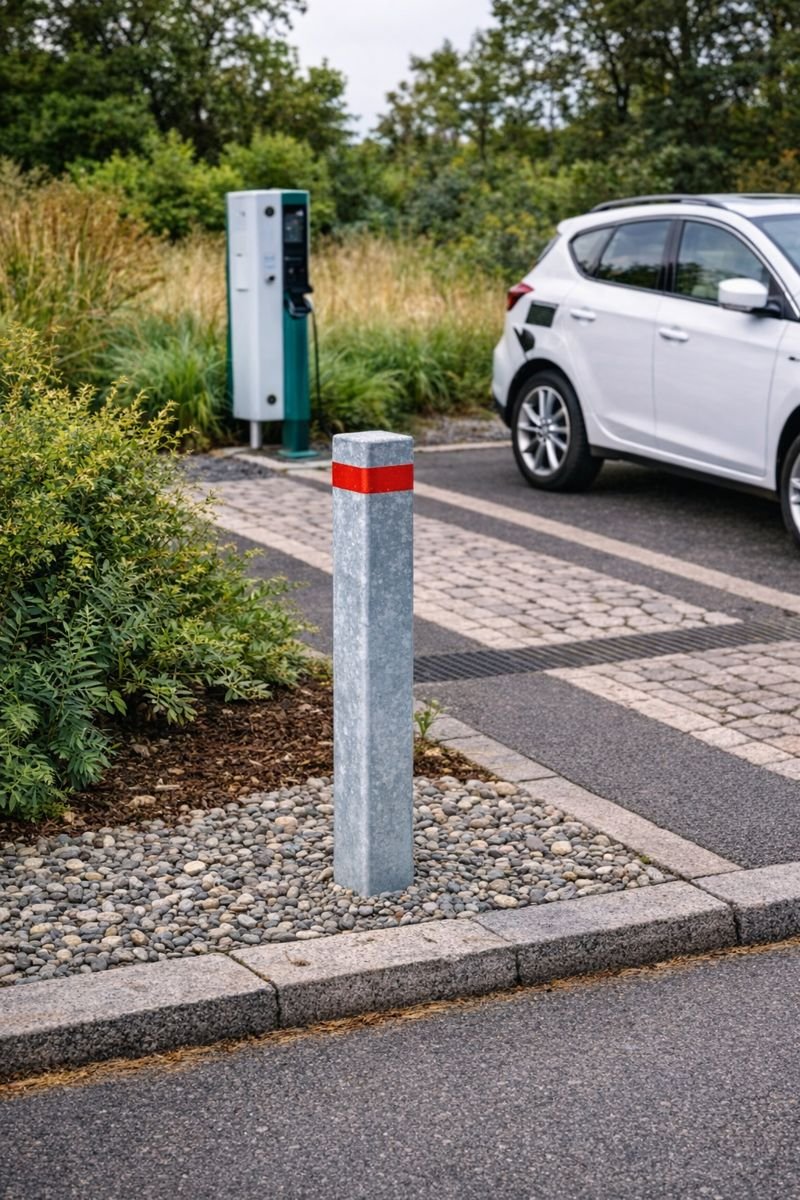 En solid og funktionel pullert designet til byrum, gågader, parkeringspladser, indkørsler og til beskyttelse af ladestandere og andre installationer.