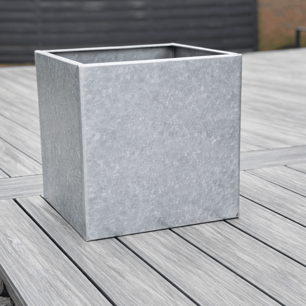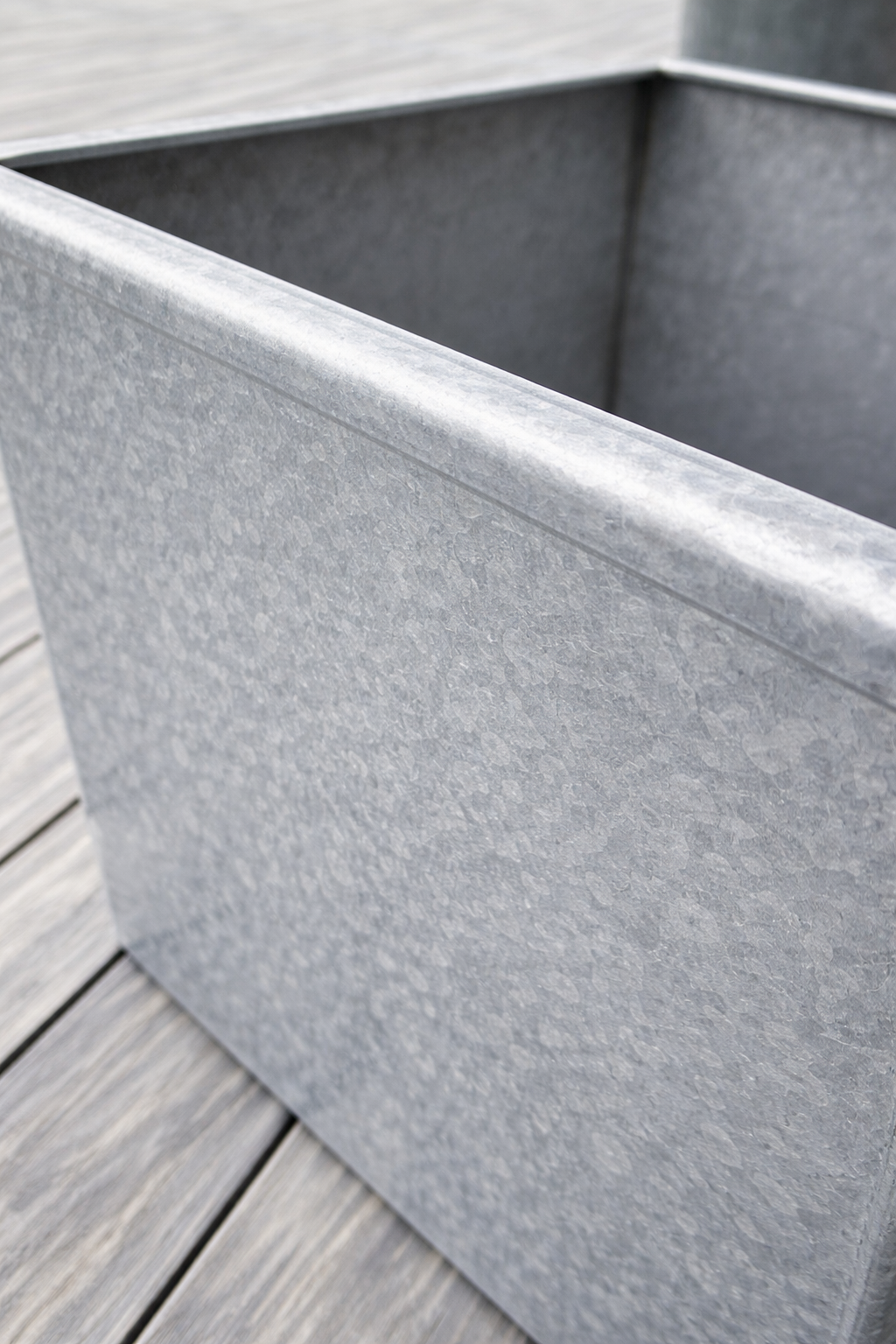Fuldsvejst plantekasse i galvaniseret stål med indadbøjet kant