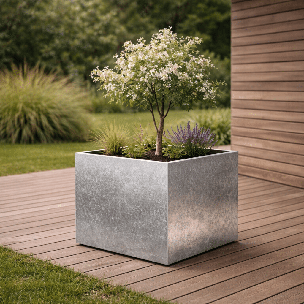Denne fuldsvejste plantekasse i 3 mm massivt, varmgalvaniseret stål er en robust og arkitektonisk løsning til både private haver og professionelle landskabsprojekter. Kombinationen af kraftigt stål og galvaniseret overflade sikrer lang holdbarhed, høj stabilitet og effektiv beskyttelse mod rust i det nordiske klima.