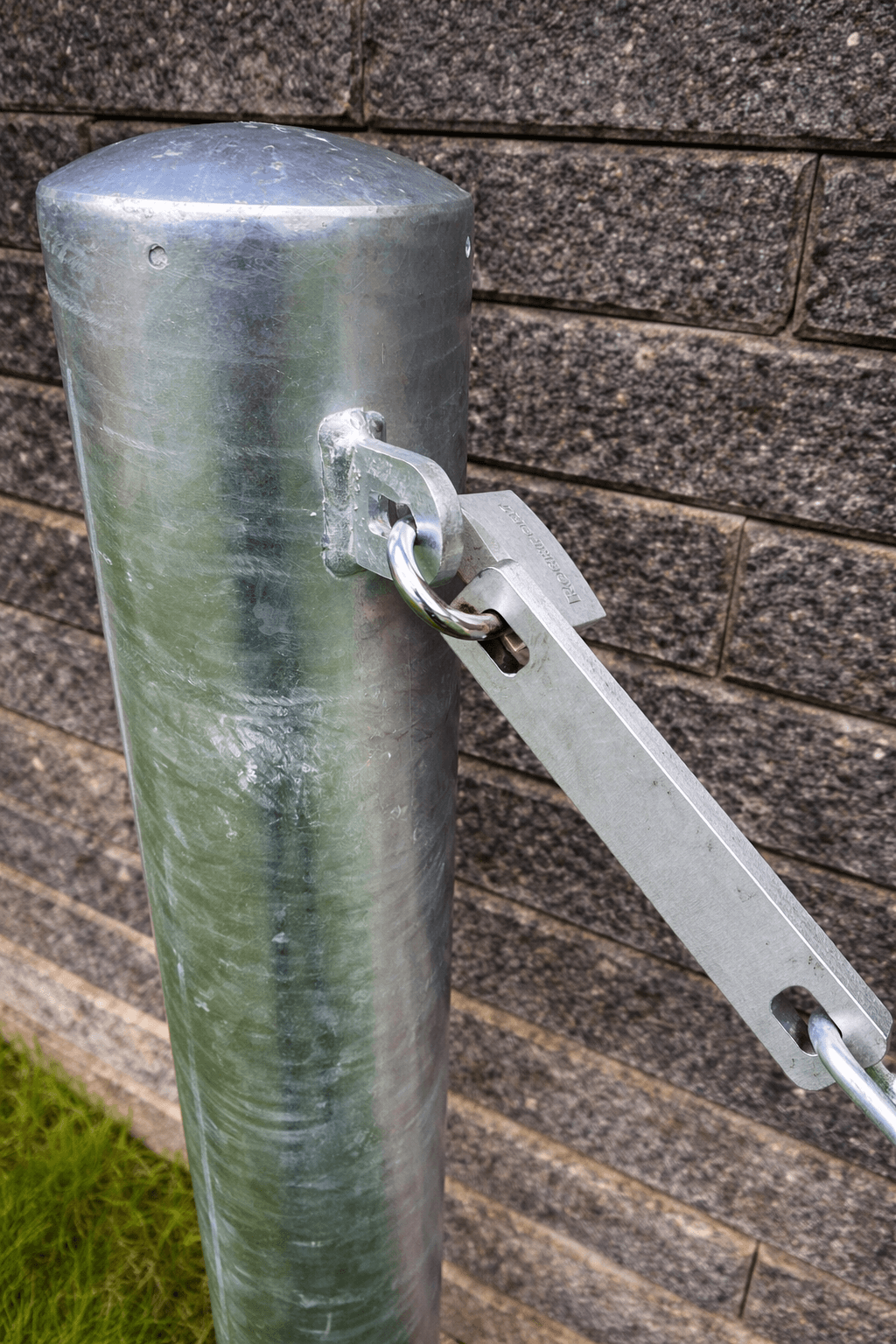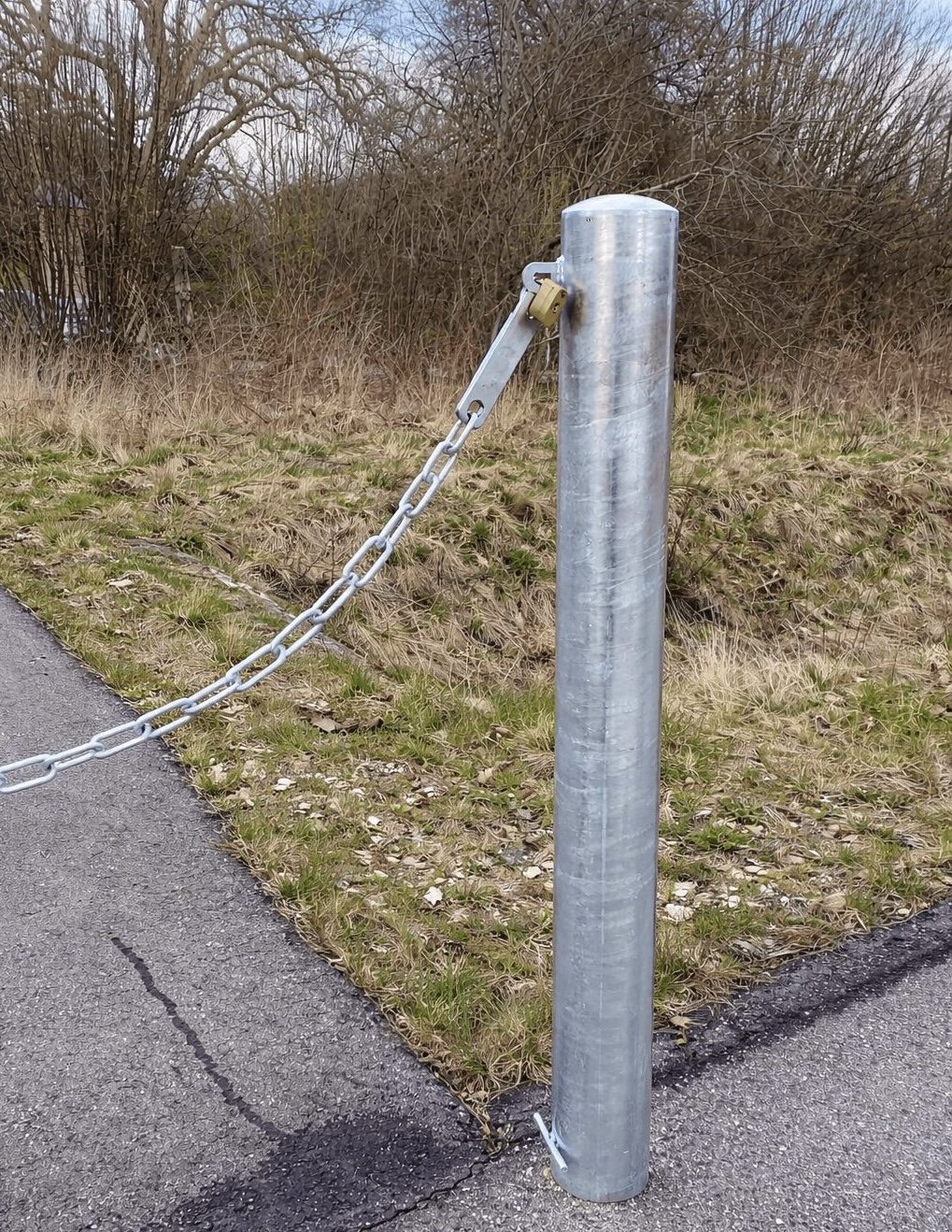 Galvaniseret pullert med beslag til hængelås – en holdbar og pålidelig løsning til afspærring af områder. Designet til brug med kæde og hængelås, så du nemt kan regulere adgang og øge sikkerheden. Velegnet til gårde, parkeringspladser og offentlige områder, hvor der er behov for en stærk og praktisk løsning.