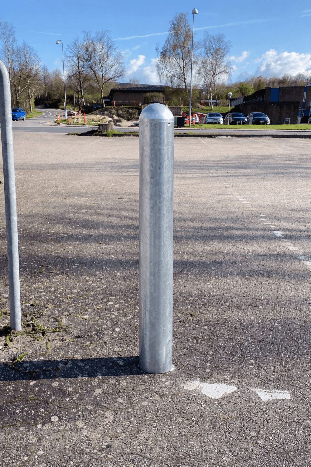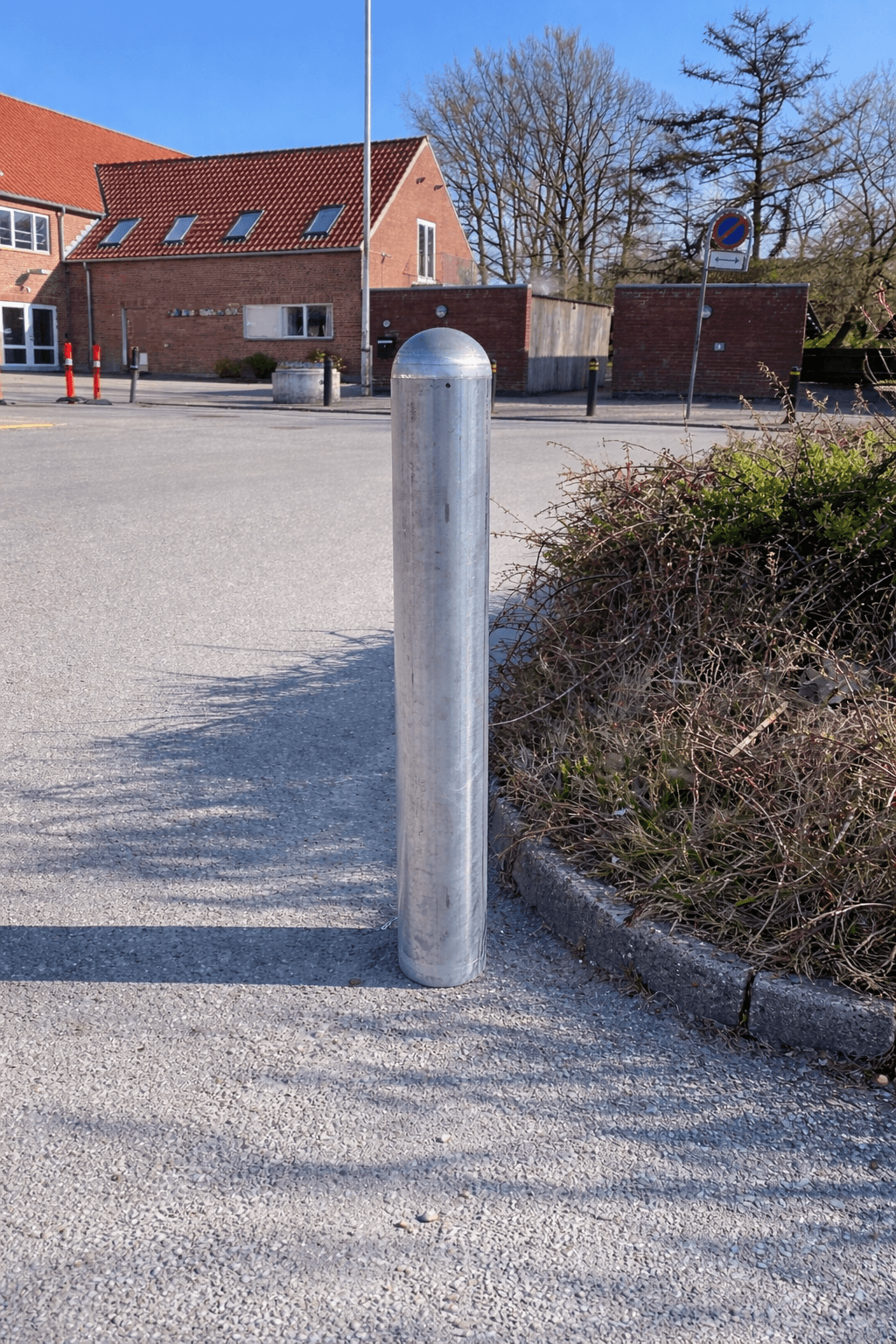 En solid og driftssikker pullert i varmgalvaniseret stål med afrundet (rund) top. Det enkle og tidløse design giver et rent og moderne udtryk i både byrum og private udendørsarealer.