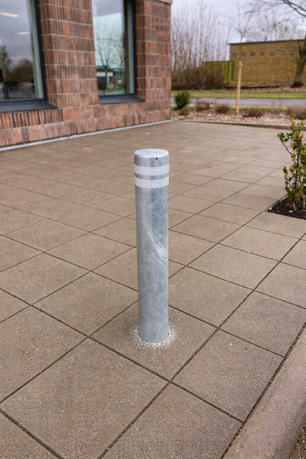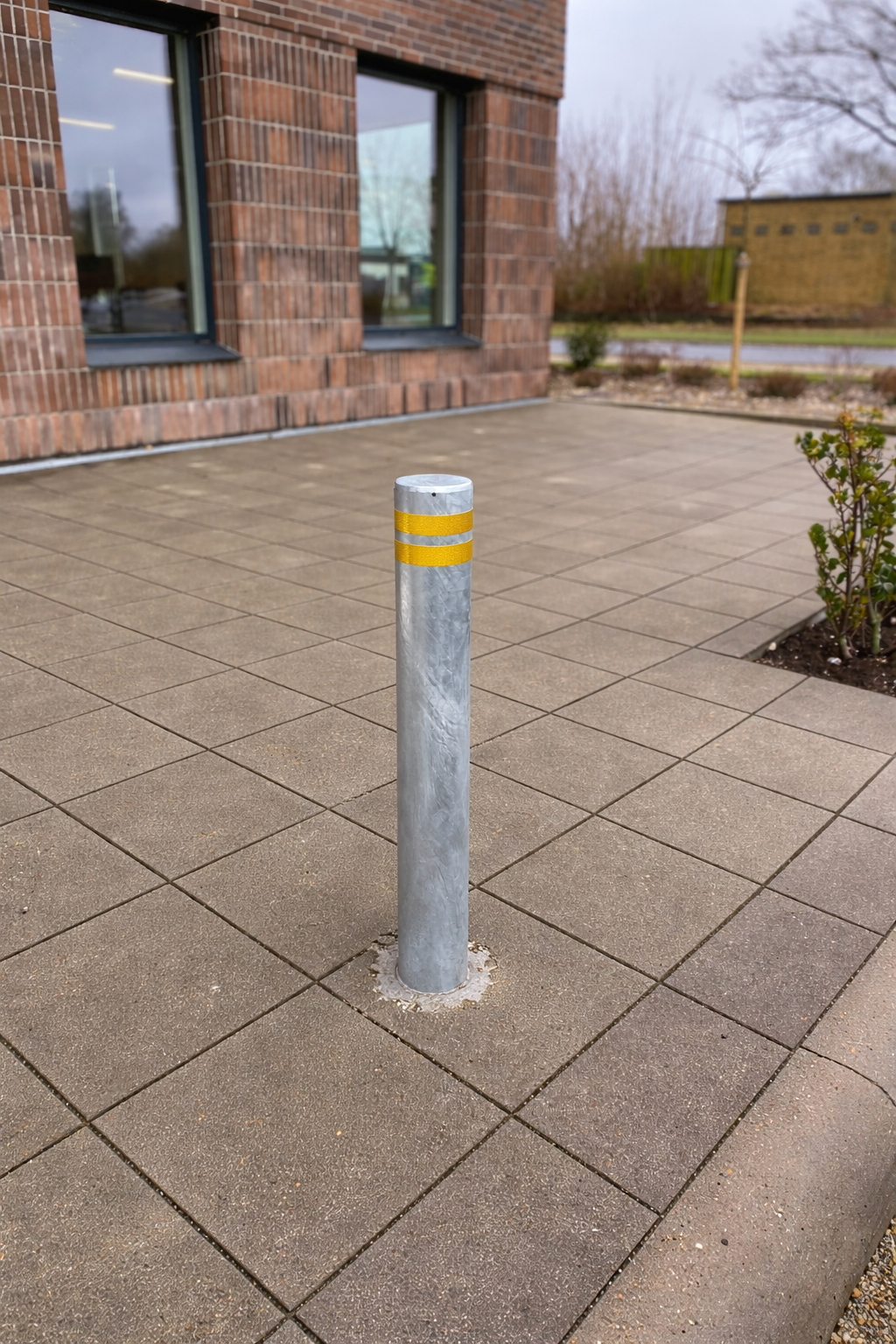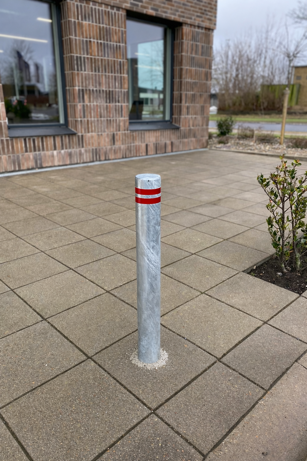 En solid, driftssikker og professionel pullert i varmgalvaniseret stål med flad og lukket top. Det enkle og tidløse design giver et rent og moderne udtryk i både byrum og private udendørsarealer.