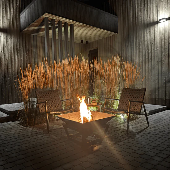 EMBER fungerer både som effektiv varmekilde og som et stemningsskabende samlingspunkt i haven.